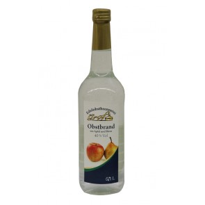Obstbrand mit reifen und ausgewählten Äpfeln und Birnen aus der Edelobstbrennerei.